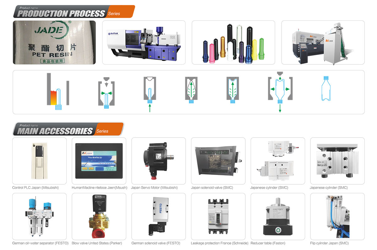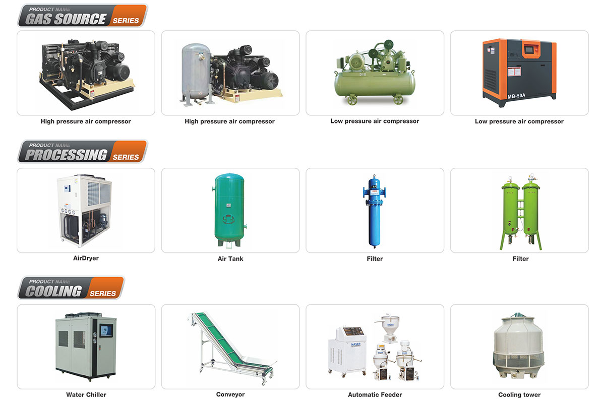 Action and blowing are divided into two parts to meet the needs of blowing bottles, different movements of different air pressure, to achieve high pressure blowing products.